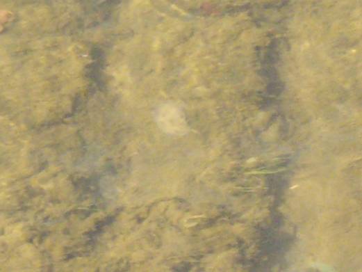 川底に砂や石があってうっすらと藻がついている。虫がいる。(3点)